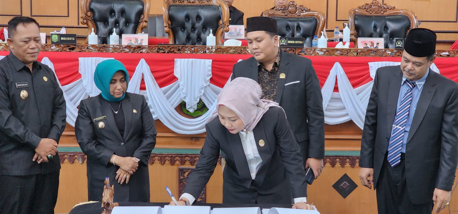 Dalam paripurna ini juga dilakukan pengesahan Ranperda retribusi Persetujuan Pembangunan Gedung (PBG) menjadi Perda.(Galery Foto)