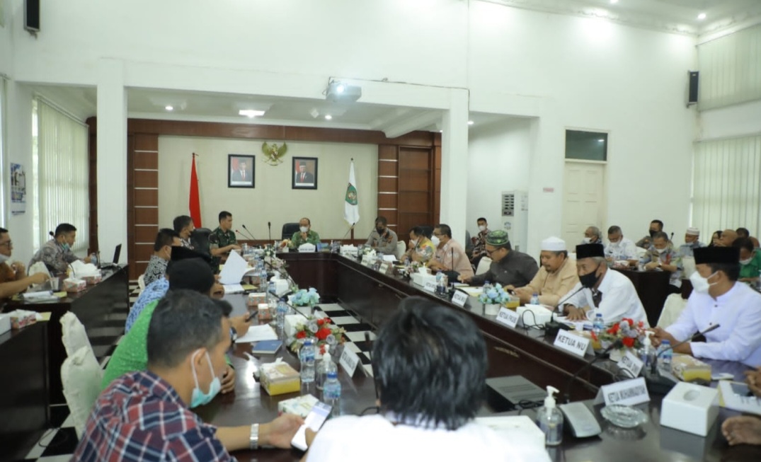Usai melaksanakan upacara di Halaman Kantor Bupati Asahan, Bupati Asahan bersama dengan Wakil Bupati Asahan, Sekretaris Daerah Kabupaten Asahan, Para Asisten dan beberapa OPD mengikuti upacara Hari Lahir Pancasila secara virtual di Aula Melati Kantor Bupati Asahan. (RS)