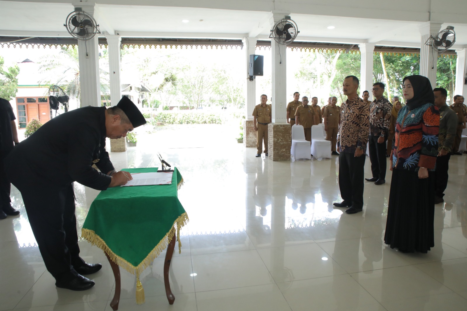 Asahan – Pjs Bupati Asahan Drs. Basarin Yunus Tanjung, M.Si., secara resmi melepas Kafilah Kabupaten Asahan yang akan mengikuti Festival Seni Qasidah Tingkat Provinsi Sumatera Utara pada 6-11 Oktober 2024 di Asrama Haji Medan. Pelepasan ini dilaksanakan di Pendopo Rumah Dinas Bupati Asahan, Jum’at (4/10/2024) dan dihadiri Pjs Ketua TP PKK Kabupaten Asahan, Para Asisten, OPD, Staf Ahli Bupati Asahan, Ketua LASQI beserta seluruh unsur pengurus lainnya.